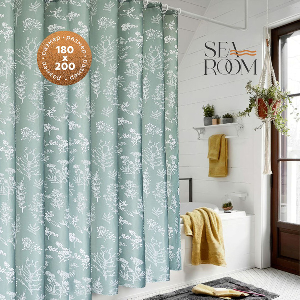 Штора для ванной 200x180 см ZINKO тканевая полиэстер, водоотталкивающая