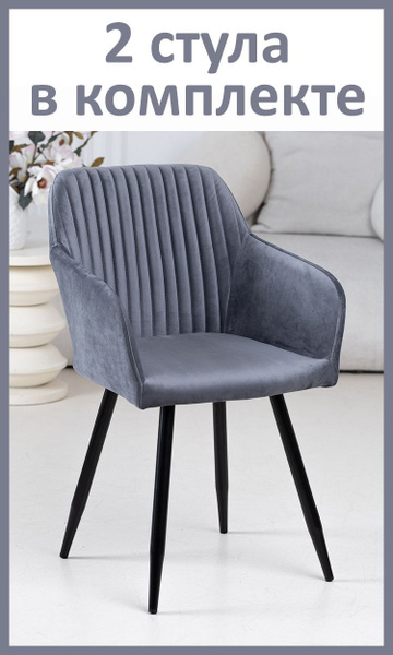 Стулья кухонные со спинкой Grande комплект 2 шт., цвет серый, черные