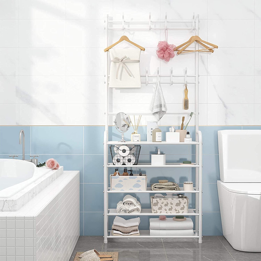 Метална поставка за обувки с 5 рафта Asos, 60 см x 26 см x 170 см, бяла