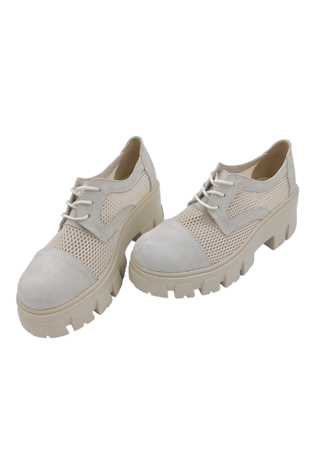 Дамски обувки, мрежа, велур естествена кожа, подметка с шипове, бежови