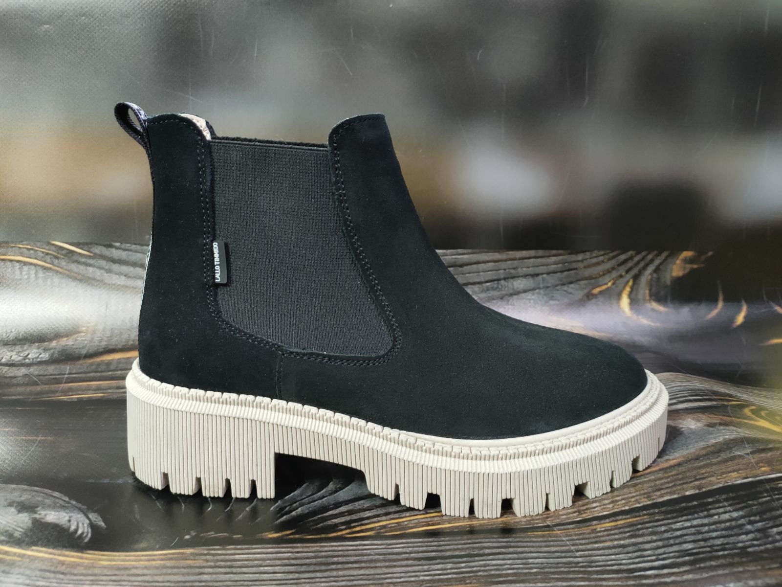 Лаконичные черные челси изготовили из мягкой бархатистой замши, устойчивой к появлению потертостей и царапин.