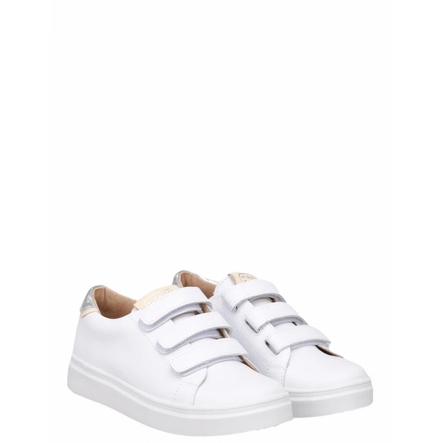 Кеди білі шкіряні з вставками срібно-бежевого кольору універсальні