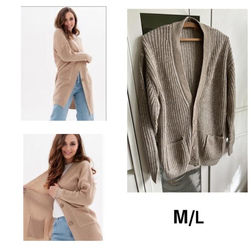 M бежевая светлая кофта кардиган на пуговицах крупная вязка с карманами