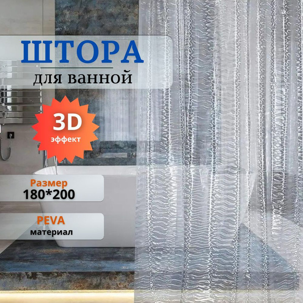 Штора для ванной 200x180 см House of magic шторы в ванну 3д
